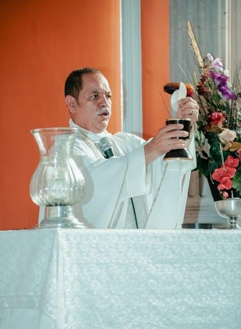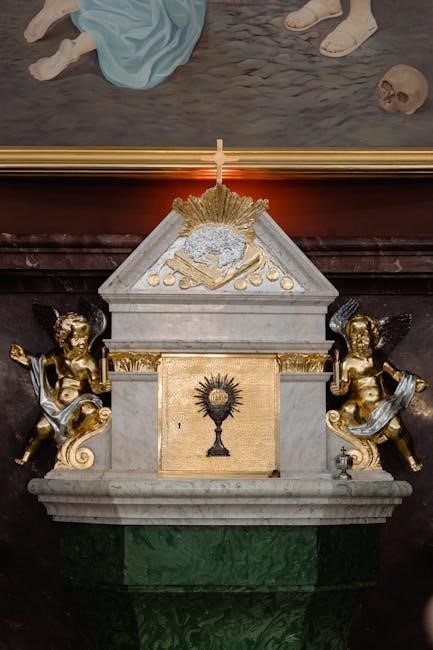 The Litany of the Sacred Heart is deeply intertwined with the Eucharist, as both emphasize Christ’s boundless love and sacrifice. The Eucharist, as the source and summit of Christian life, mirrors the Sacred Heart’s symbolism of divine mercy and redemption. The litany often accompanies Eucharistic adoration, fostering a profound connection between the devotion and the sacrament. This relationship highlights the unity of Christ’s love, expressed in both the Eucharistic banquet and the Sacred Heart’s infinite mercy, enriching the spiritual lives of the faithful.